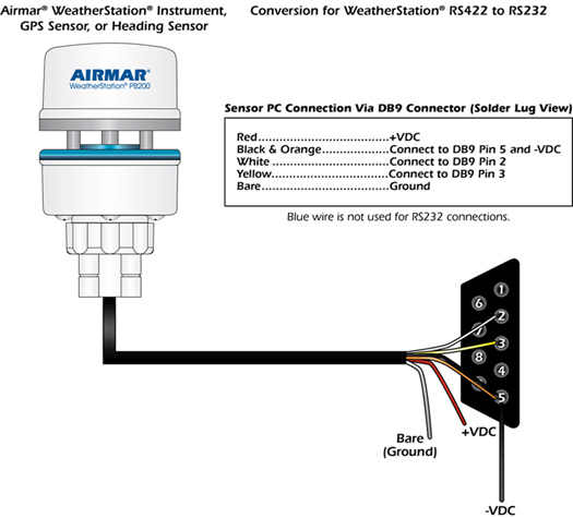 AirMar公司生產(chǎn)的WX系列超聲波氣象儀,標(biāo)準(zhǔn)NMEA0183或者NMEA2000數(shù)據(jù)格式輸出,RS422輸出,波特率都是4800。可以通過WeatherCaster軟件、超級終端、串口調(diào)試助手或者其他串口調(diào)試程序都超聲波氣象站進(jìn)行調(diào)試。 如果需要配置成RS232輸出,連接方式如下圖所示: