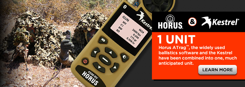 Kestrel手持式氣象儀和Horus Vision共同合作,開發出了射擊輔助工具,結合了關鍵環境數據和精確射擊所需的軟件,全部都集中在一個手持式氣象追蹤儀里。以前,射擊者需要使用Kestrel氣象儀測量氣象數據,然后把數據輸入到具有Horus ATrag彈道軟件的PDA中,然后再計算射擊參數?,F在,Kestrel手持式彈道氣象追蹤儀不僅能夠精確測量氣象參數,而且具有Horus ATrag軟件,大大降低了射擊者的工作量。Kestrel手持式氣象儀符合IP67的防水防塵等級和MIL-STD-810F的堅固等級。