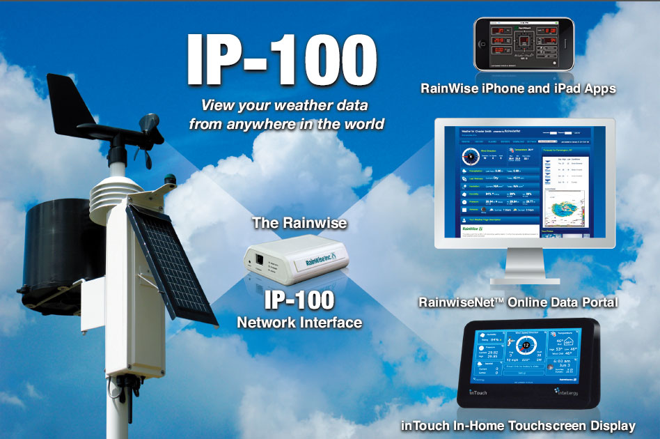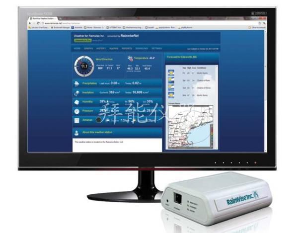 在線的云計算數據托管和門戶網站,RainwiseNetTM,從氣象站接受IP-100信息。RainwiseNeT提供實時和歷史數據,并且可以被私制和公開協議識別。多個氣象站觀測點可以歸納為農業或者教育方案。另外,IP-100可以通過一個XML API數據接口集成第三解決方案。