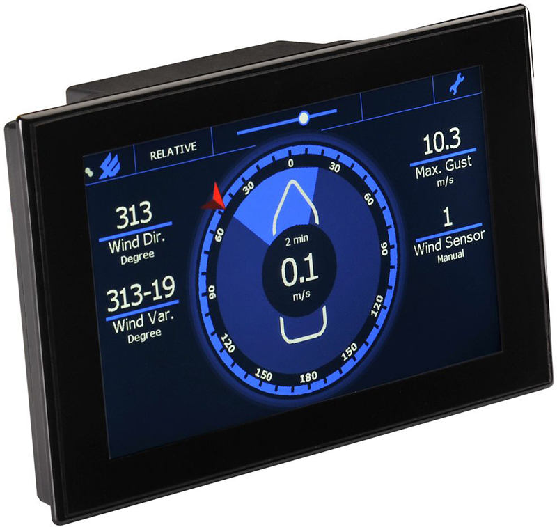 多功能 TFT 風顯示器在 NMEA 模式下直接從風傳感器接收數據,無需額外的接口。 它為風傳感器提供電源,并且可以“菊花鏈”到第二個風顯示器以傳輸風傳感器信息。