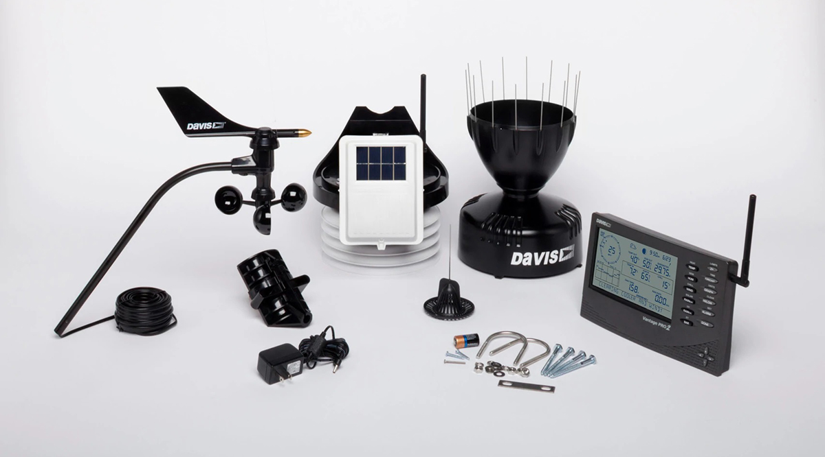 Vantage Pro2 6152無線標準氣象站是一款集成化的自動氣象站,可以測量風速、風向、空氣溫度、相對濕度、大氣壓力、降雨量,并能夠計算出風寒、露點、熱度等,數據按照設定的采樣間隔自動保存,從1分鐘到60分鐘不等。基本配置由無線氣象站主機和無線控制臺、軟件和數據存儲卡組成,無線氣象站主機用來測量氣象參數并將數據通過無線傳輸給無線控制臺,無線控制臺在液晶顯示屏上實時顯示測量和計算的氣象參數,數據存儲卡用于存儲測量和計算的氣象參數,通過軟件進行下載分析。
