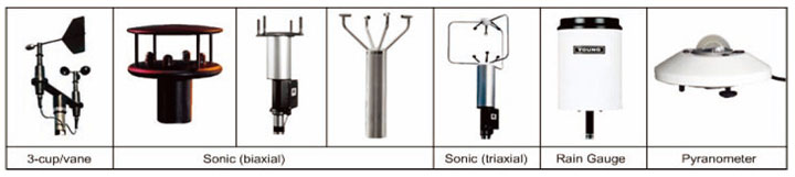 ? 其他可選氣象傳感器有:空氣溫度、相對濕度,太陽輻射、大氣壓力、降雨量、能見度儀等